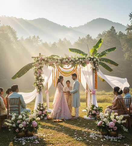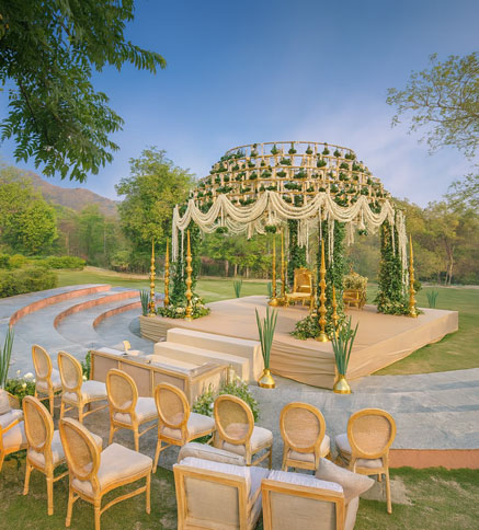 In the serene embrace of Paatlidun Safari Lodge, located in Jim Corbett National Park, the natural tranquility makes it an ideal venue for a lovely wedding. The peaceful surroundings blend the soothing sounds of wildlife with stunning views, offering couples a uniquely intimate and beautiful setting to exchange vows. Whether it’s an early morning ceremony serenaded by birdsong or a dusky twilight exchange of vows against the soundtrack of the jungle, the lodge ensures every wedding is not just an event, but a cherished memory crafted amidst the unparalleled beauty of nature.