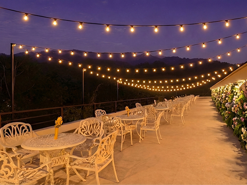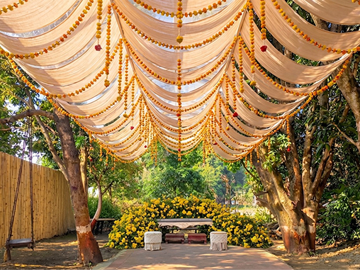 Tucked beside the tranquil wellness spaces, the Spa Lawn offers a serene open-air setting for intimate wedding celebrations. Surrounded by soft greenery and gentle breezes, this elegant lawn is perfectly suited for mehendi functions, close-knit family gatherings, and relaxed pre-wedding moments. As the day transitions into evening, the space transforms beautifully for cozy bonfire nights and sundowner celebrations, creating an atmosphere that feels personal, peaceful, and effortlessly romantic, ideal for weddings that celebrate togetherness in its most intimate form.