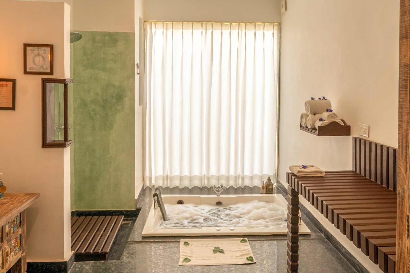 Enjoy a luxurious 1,000 sq. ft. villa with breathtaking hill views from a private terrace. Featuring plush bunk beds, a unique star-gazing window, and a modern Jacuzzi, each villa blends elegance with nature, offering a serene escape inspired by the exotic birds of Jim Corbett National Park, perfect for a memorable and indulgent stay.