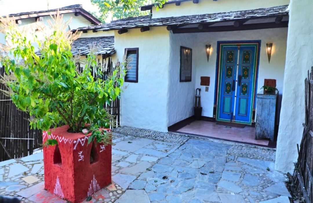 To the untrained eye, it may look like artistic flair. But here, every hue, every carving, every corner echoes Kumaon’s cultural heritage, preserved not in museums, but in homes, in temples, and now, in a forest retreat designed to honour them.