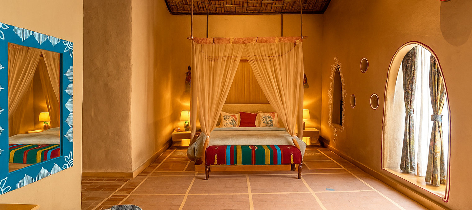Quiet gardens, shaded sit-outs, and open courtyards invite you to pause and breathe, while days unfold to birdsong, leafy calm, and starlit evenings. And beyond nature, it is the warmth of our people that completes the sanctuary — welcoming every guest not as a visitor, but as family. At Mudhouse, peace is not sought, but found.