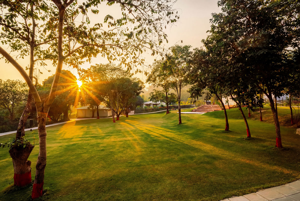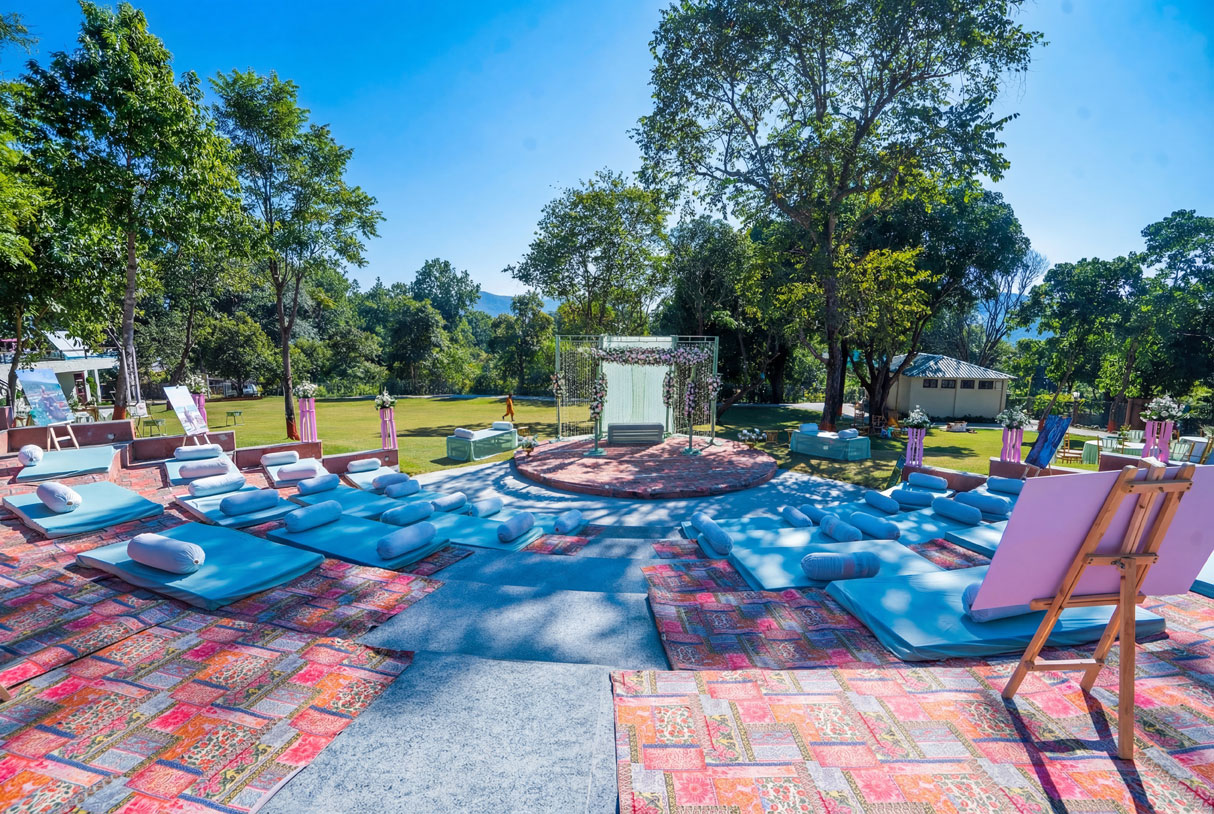 Some ceremonies need openness, a vast lawn where pheras can take place under an uninterrupted sky, where families can sit without crowding, where celebration feels expansive yet unforced. Others need enclosure, a naturally tiered amphitheatre where vows echo gently, carried by trees rather than speakers. Some moments ask for intimacy, a quiet tea gathering under canopies of leaves, or a candlelit dinner where food and conversation share equal importance.
