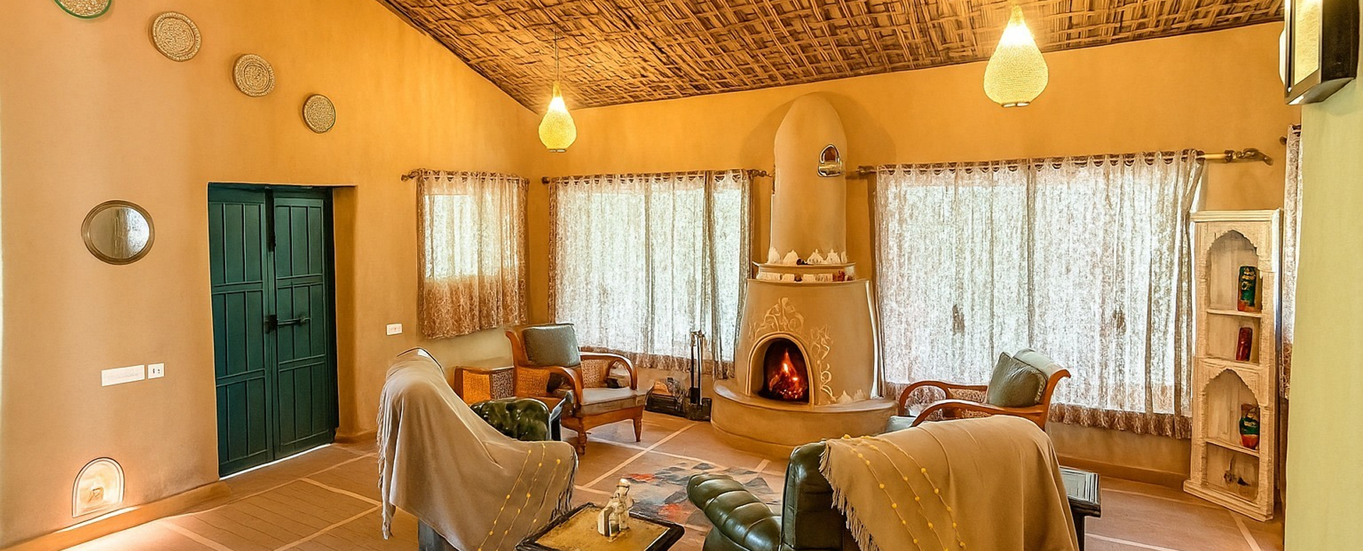 In villa categories like Kothi and Bangla, in-room wood-fire setups turn winter evenings into gentle rituals. The soft crackle, the warm glow, the slow conversations, everything feels more grounded, more personal, more connected to the forest outside.